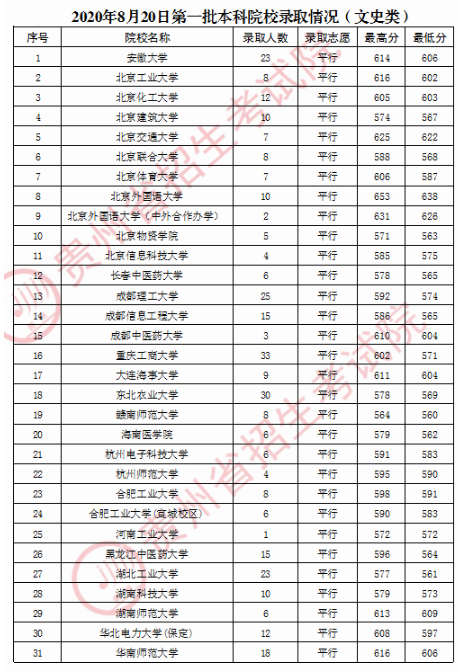 近日,同学们和广大家长朋友们非常关注的2020年贵州省第一批本科平行志愿院校录取情况已经公布。下面小编为大家详细介绍一下,供大家参考。