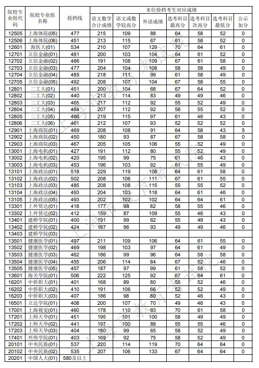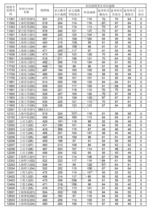 2020上海本科普通批投档分数线公布