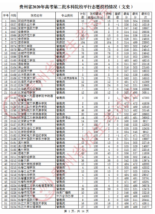 目前,2020年贵州省高考招生录取工作正在进行,贵州省2020年高考第二批本科院校平行志愿投档情况已经公布。下面小编为大家详细介绍一下,供大家参考。
