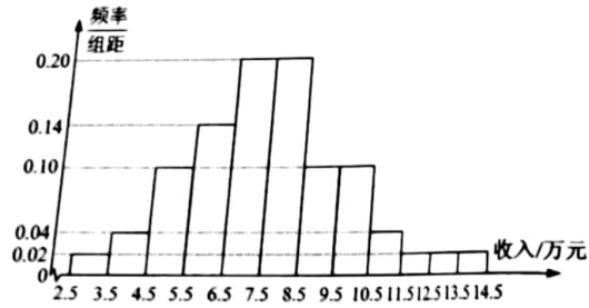 2.为了解某地农村经济情况,对该地农户家庭年收入进行抽样调查,将农户家庭年收入的调查数据整理得到如下频率分布直方图: