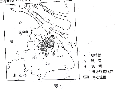 (2)据图描述该品牌咖啡馆在上海的空间分布特征。(4分)
