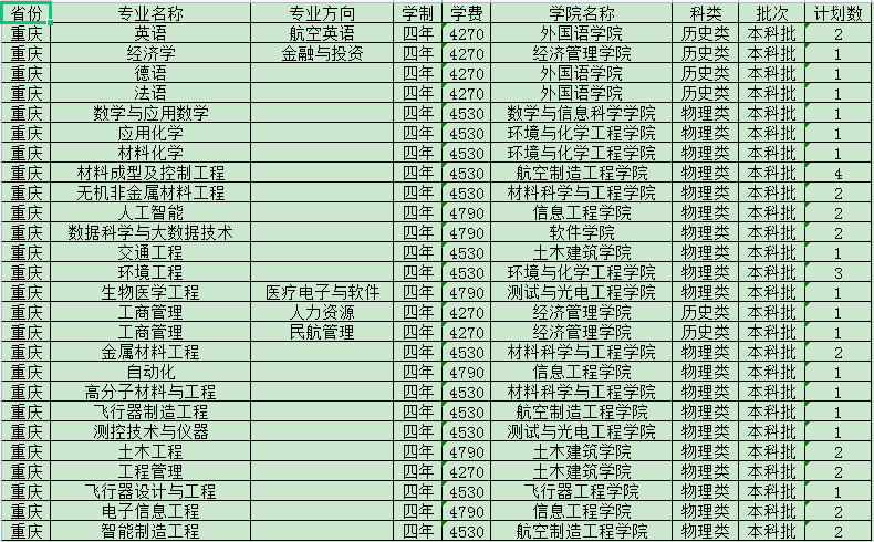 南昌航空大学招生计划