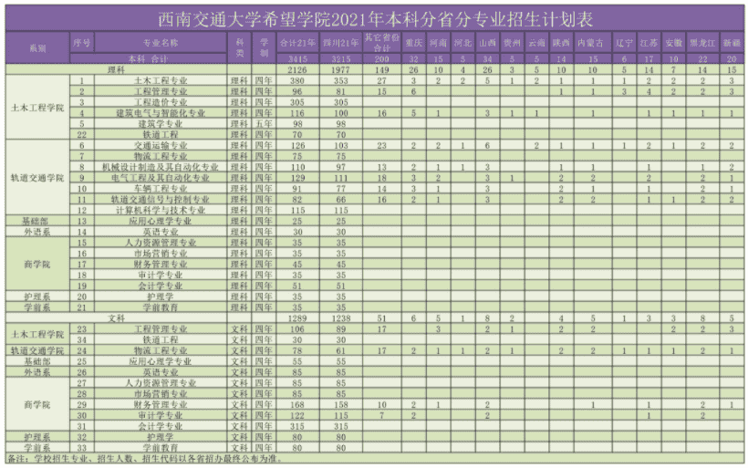 同学们和广大家长朋友们非常关注的2021年西南交通大学希望学院招生计划及招生人数已经公布,下面小编为大家详细介绍一下,供大家参考。