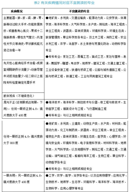 2、考生患有下列疾病,学校有关专业可以不予录取