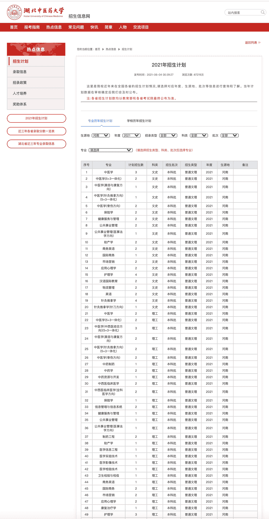 2024年湖北医药学院药护学院各省招生计划及招生人数