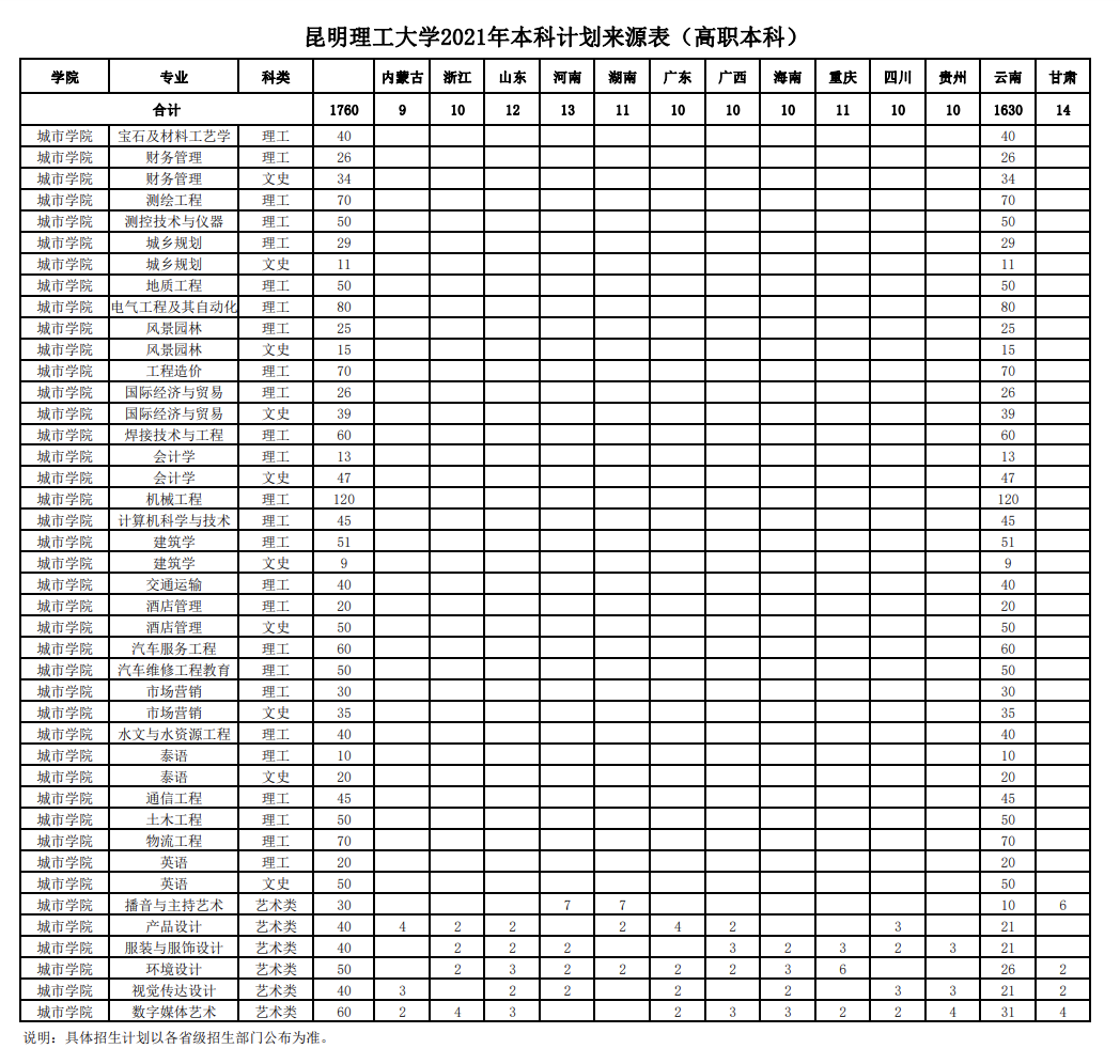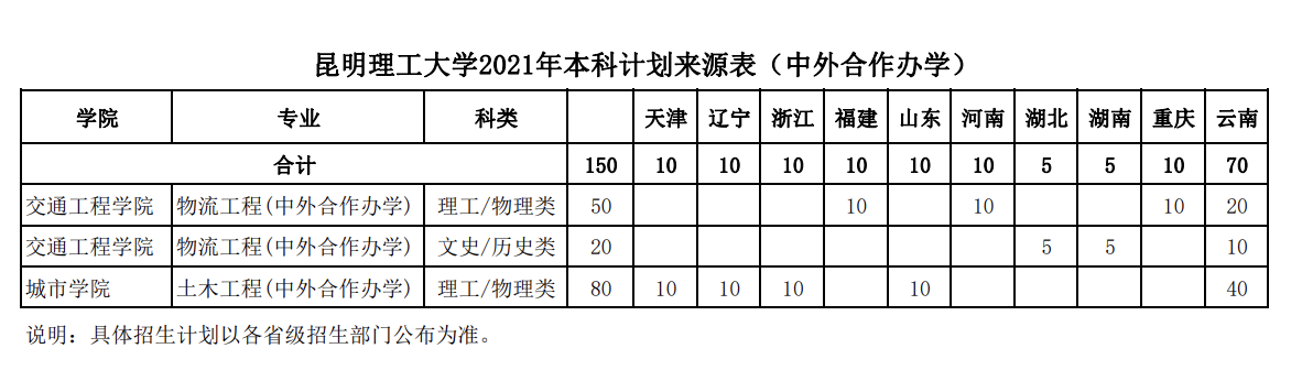 昆明理工大学2021年本科计划来源表 时间:2021-06-21 20:55 招生计划 昆明理工大学2021年本科计划来源表(普通本科)昆明理工大学2021年本科计划来源表(中外合作办学)昆明理工大学2021年本科计划来源表(高职本科)