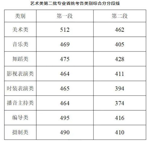 注:(1)艺术类第一批中,教育部批准的可自主划线的独立设置本科艺术院校和清华大学等高校的艺术类本科专业,由学校自主划定文化分数线;其他高校艺术类本科专业文化分数线须不低于 372分。(2)如遇部分类别第一段录取后即已完成全部计划,则该类别不进行第二段志愿填报。(3)第二段投档录取完成后,将根据各类别缺额计划和生源情况,分别决定是否适当扩大比例征求志愿。