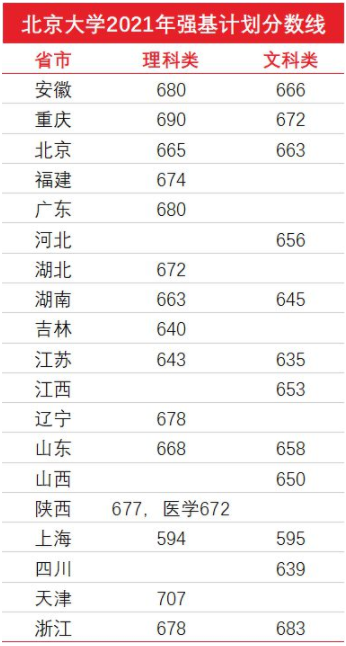 2021年强基计划入围分数线及入围结果全面陆续公布,报考强基计划的同学们尽快登录系统或高校本科招生网查看入围状态和考试安排。下面是北京大学强基计划各省入围分数线,供参考。
