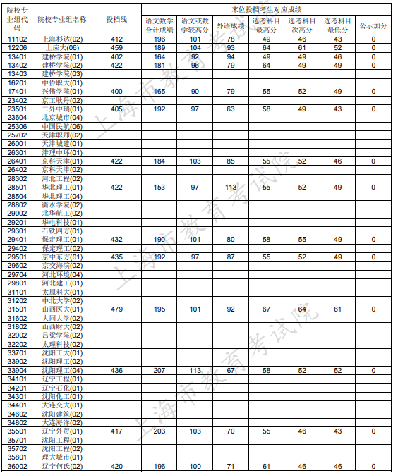 2020上海本科征集志愿投档分数线