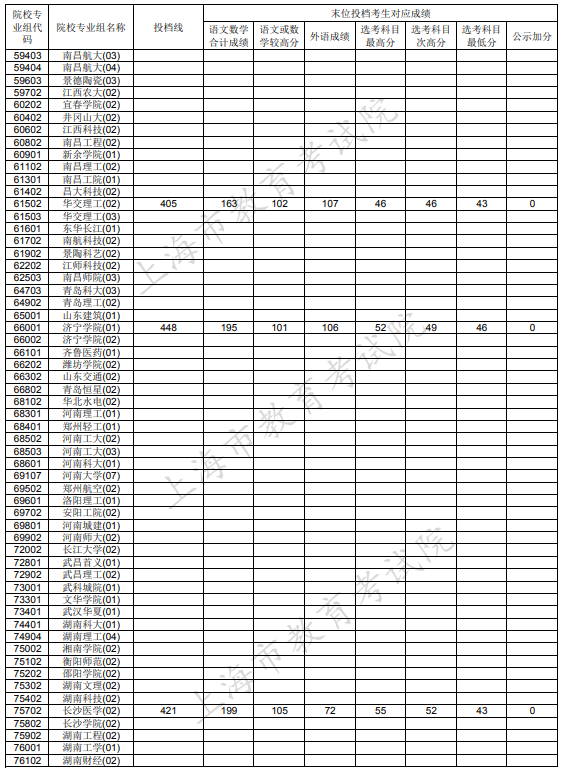 上海本科普通批次征集志愿投档分数线