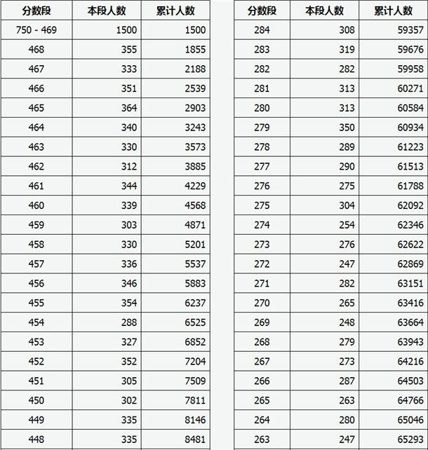 2020山西高考文科未录取考生成绩分段表已经公布,具体来看一下: