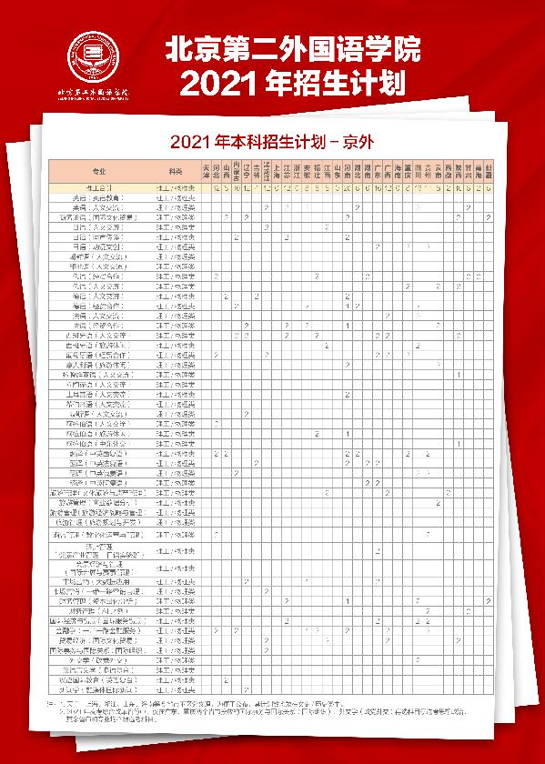 北京第二外国语学院2021年京外本科招生计划