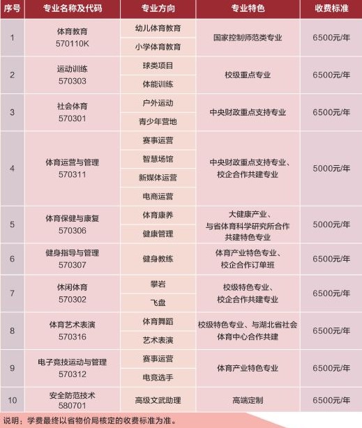 2021高考填报志愿时,湖北体育职业学院学费多少钱一年、各专业收费标准是怎样的是广大考生和家长朋友们十分关心的问题,为了方便大家查询,雷火在线已经为大家整理好了湖北体育职业学院收费标准,包含各专业学费等信息,供大家参考,如有变动,以学校官方最新消息为准。