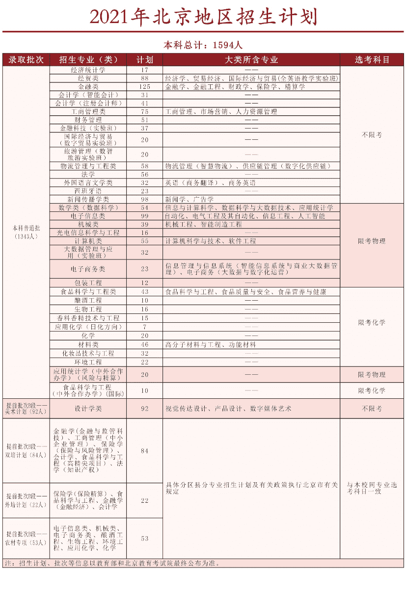 2021年北京工商大学招生计划已经公布,以下是北京市各专业招生人数,这是填报志愿时非常重要的参考数据,供大家参考,如有变动,以学校官方公布为准: