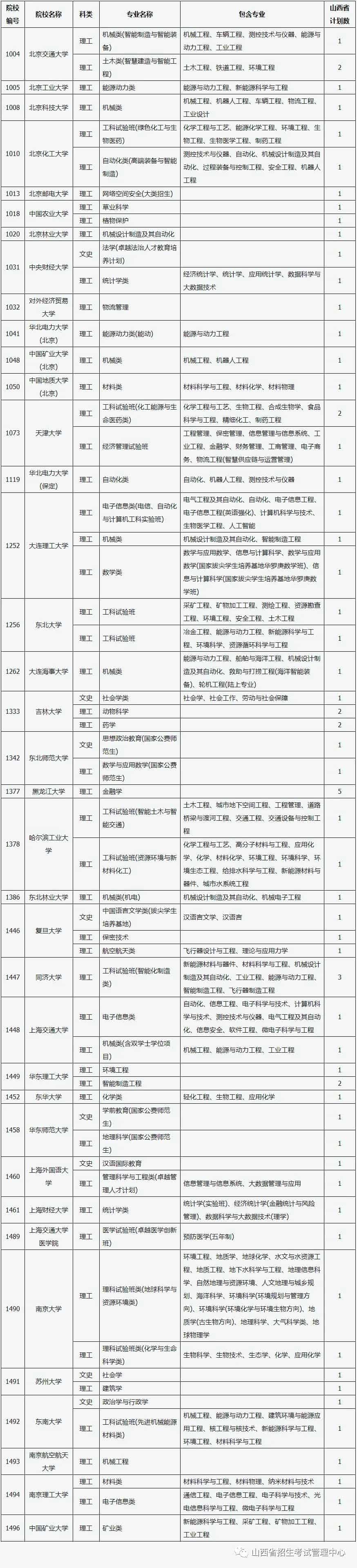 “高校专项计划”分两种,一种为按省分配计划数,另一种为不按省分配计划数。按省分配计划数的院校如下表,未列入下表的为不按省分配计划数的院校。