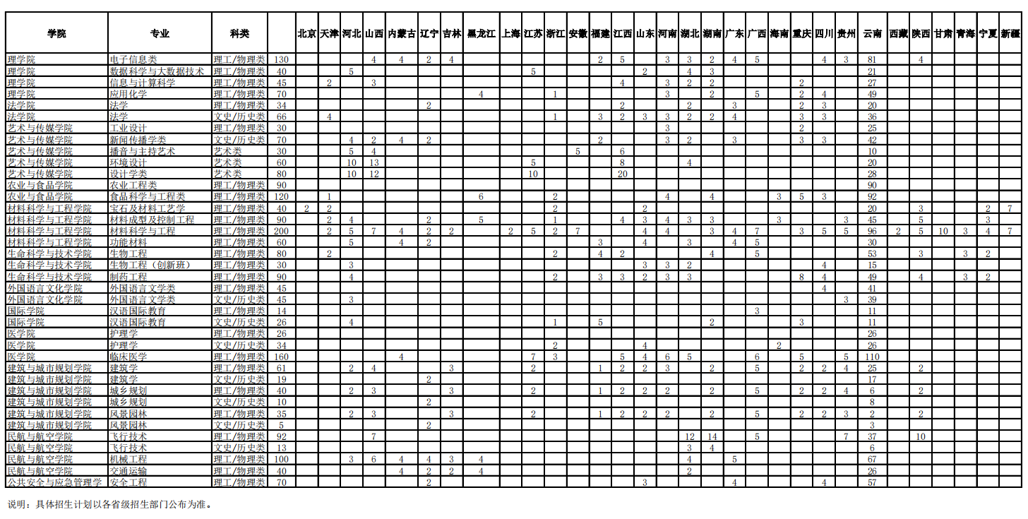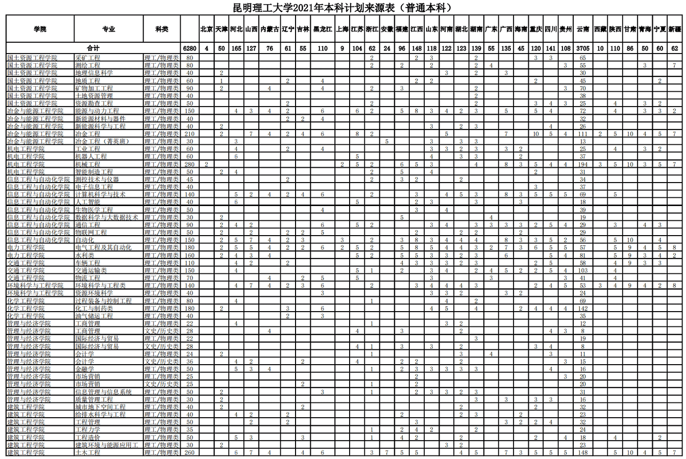 2021年昆明理工大学招生计划已经公布,以下是云南省及全国各专业招生人数,这是填报志愿时非常重要的参考数据,供大家参考,如有变动,以学校官方公布为准: