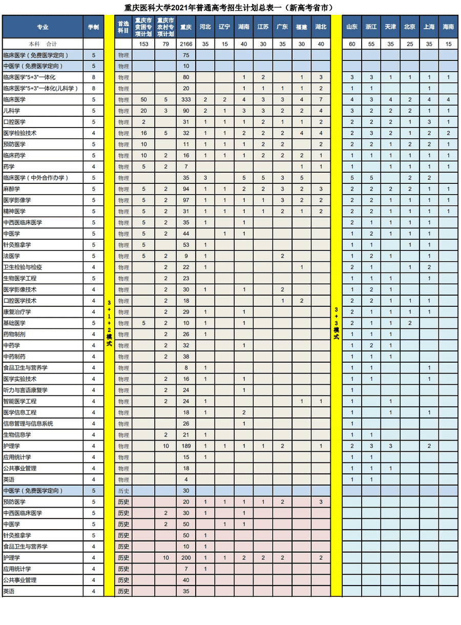 2021年重庆医科大学招生计划已经公布,以下是重庆市及全国各专业招生人数,这是填报志愿时非常重要的参考数据,供大家参考,如有变动,以学校官方公布为准: