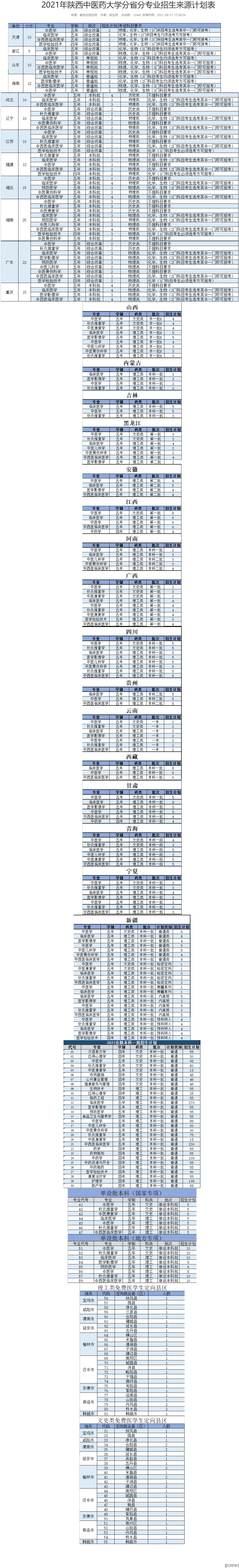 2021年陕西中医药大学招生计划已经公布,以下是陕西省及全国各专业招生人数,这是填报志愿时非常重要的参考数据,供大家参考,如有变动,以学校官方公布为准: