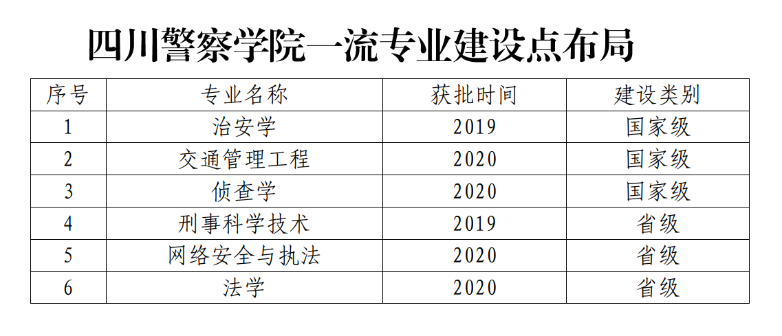 2、四川警察学院一流专业2019-2020年度四川警察学院一流本科专业建设点名单(国家级+省级)