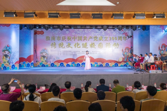 为传承和弘扬中华优秀传统文化,展现国粹精华,增强师生的民族自豪感和文化认同感,营造健康、和谐的校园文化氛围,推进校园美育工作,7月8日下午,由共青团安徽理工大学委员会、淮南市文化馆、淮南市图书馆、全市文化馆联盟主办,田家庵区文化馆、田家庵区图书馆、八公山区文化馆、八公山区图书馆承办,田家庵区京剧票友协会协办的淮南市庆祝中国共产党成立100周年暨传统文化进校园活动在钻石剧场举行。市区主办、承办单位相关领导出席活动,校团委和各学院师生代表共计200余人参加现场活动。同时,有1800多名师生通过网络在线直播的方式进行了收看。