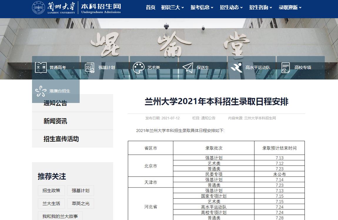 文章来源(官网发布地址):http://zsb.lzu.edu.cn/zhaoshengdongtai/tongzhigonggao/2021/0712/177262.html