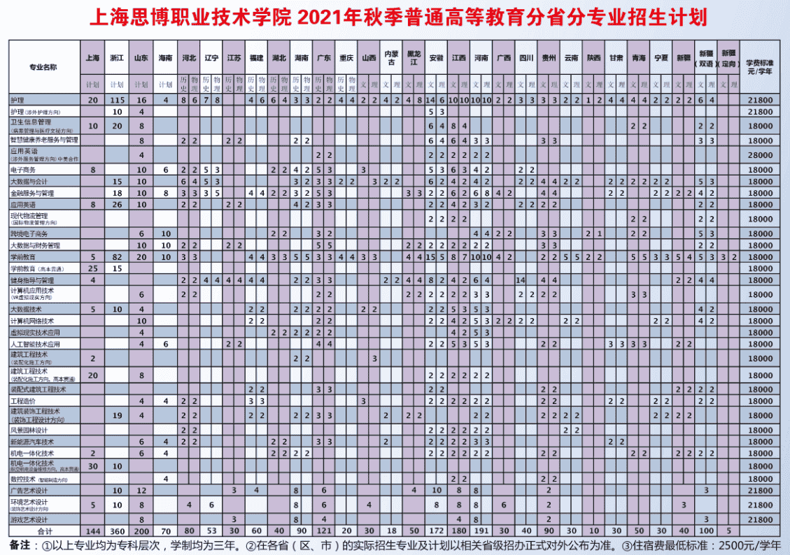 2021年上海思博职业技术学院招生计划已经公布,以下是上海市及全国各专业招生人数,这是填报志愿时非常重要的参考数据,供大家参考,如有变动,以学校官方公布为准: