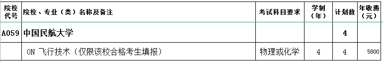 山东提前批第2次志愿中国民航大学飞行技术专业计划