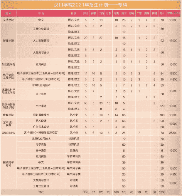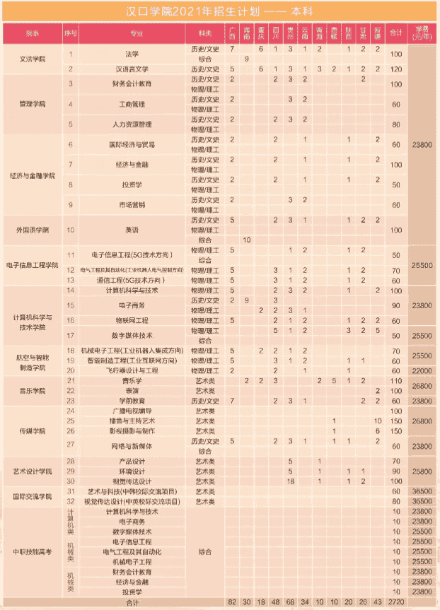 2021年汉口学院学费是多少 各专业收费标准一览