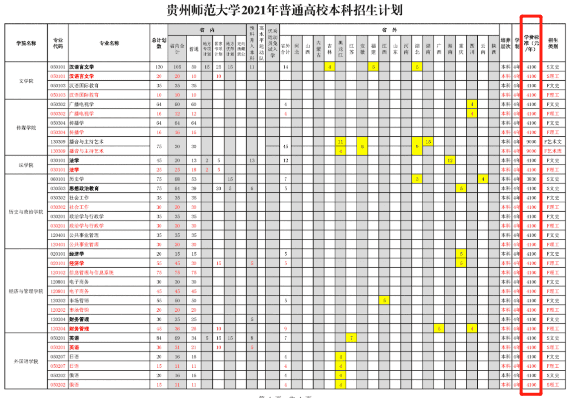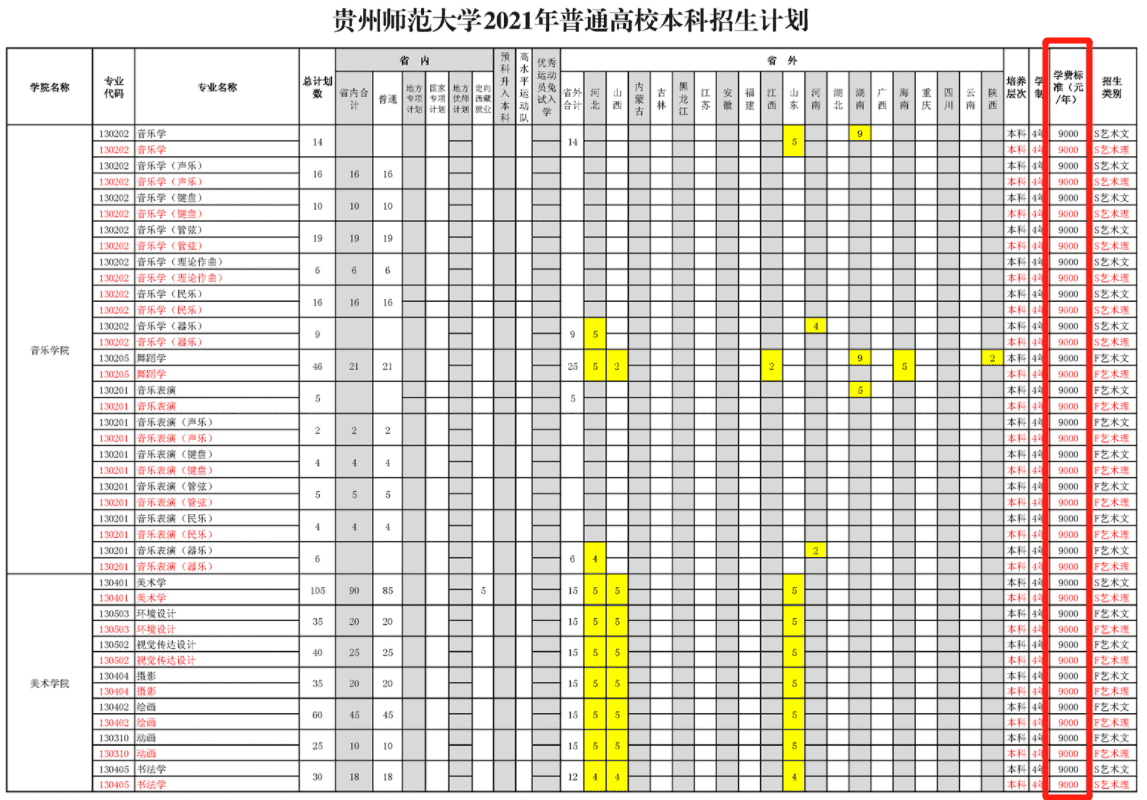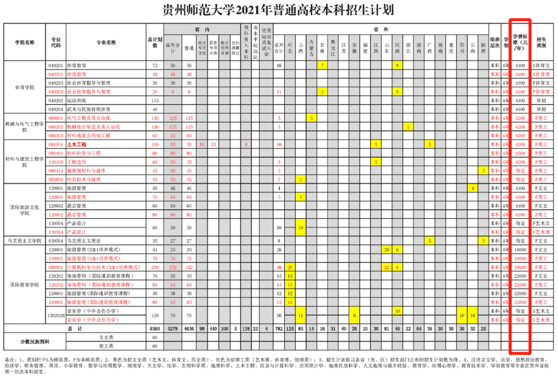 2021年贵州师范大学学费是多少 各专业收费标准