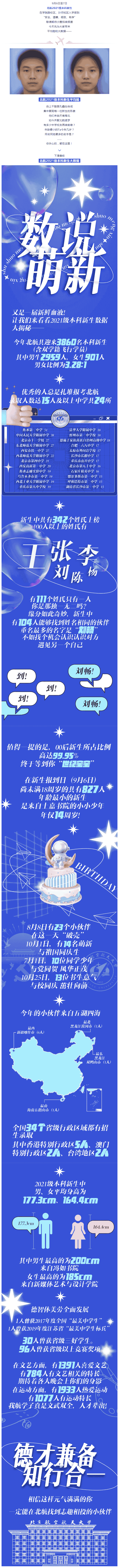 北京航空航天大学2021本科新生大数据发布!由上千副面孔叠加合成集中展现每一位新生的形象,他们来自天南海北,年龄最小的Ta今年几岁?同名同姓最多的名字是?一起来看看吧!