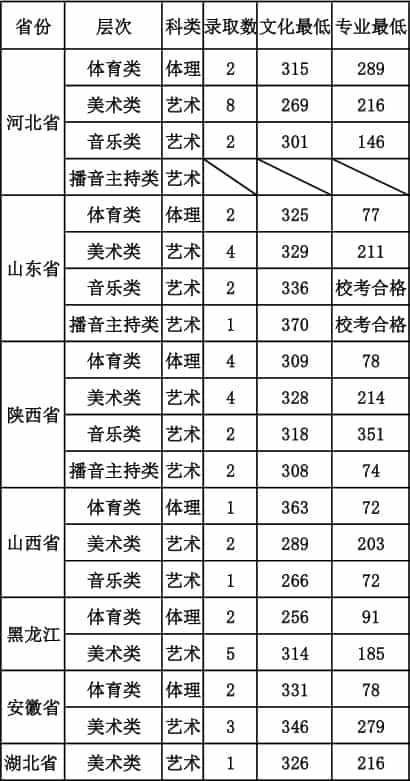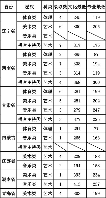 宁夏理工学院2018年艺术、体育类本科专业录取分数线