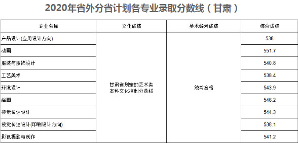 山东工艺美术学院2020年山东省内艺术本科录取分数线