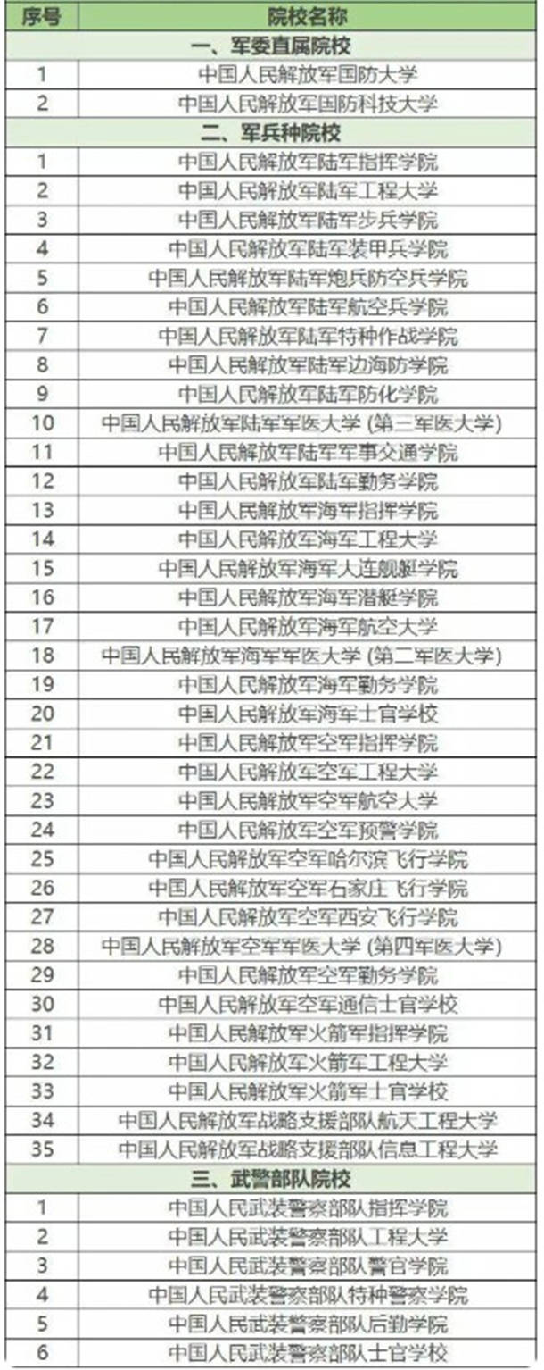 43所军校军校排名名单 全国十大顶级军校