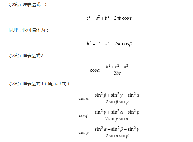 余弦定理是描述三角形中三边长度与一个角的余弦值关系的数学定理,是勾股定理在一般三角形情形下的推广,勾股定理是余弦定理的特例。