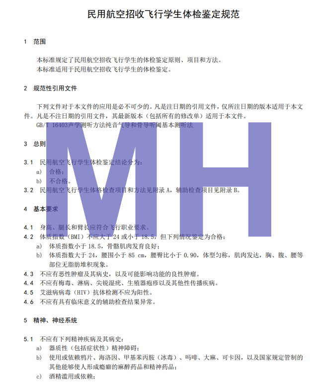 2022民用航空招收飞行学生体检鉴定规范 体检项目及要求 时间:2021-11-04 09:06 空军招飞 近日,民航陆续发布了2022年招收高中飞行员学生的招生简章,众所周知,想要成为飞行员需要通过体检,那么体检内容及要求都有哪些呢?下面是小编整理的体检鉴定规范,一起来看吧!民用航空招飞体检鉴定规范
