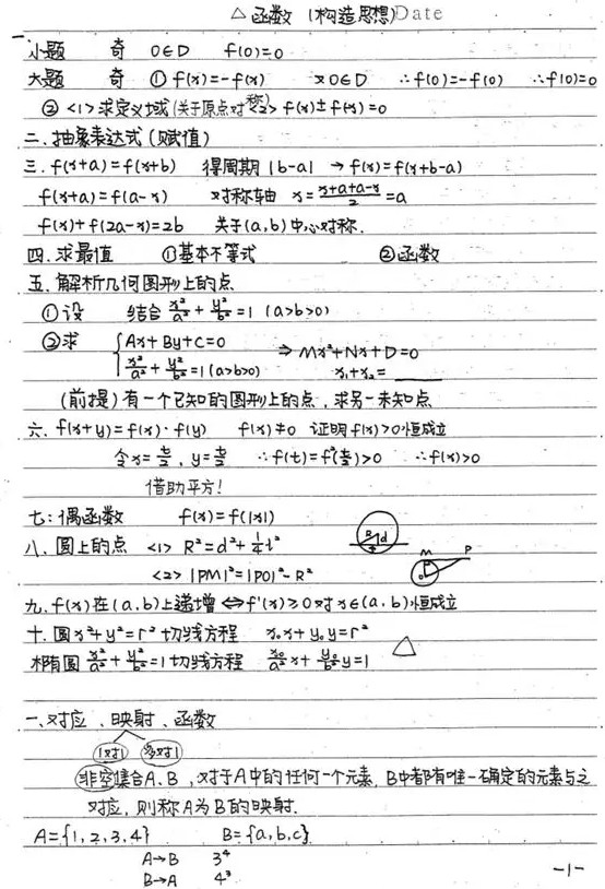 作为高考之中最重要、也最容易使各位同学产生畏难心理的学科--数学,曾是很多同学的滑铁卢。但其实作为面向全部高中生的高中数学,其内容并不艰深,学习数学也是有法可循的。小编整理了高一数学学霸笔记,来看一下!