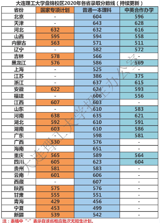 大连理工大学盘锦校区2020年录取分数线
