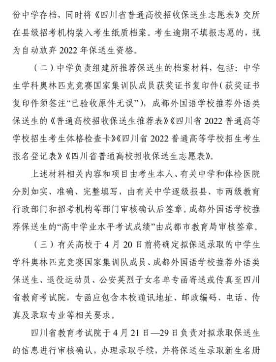 2022四川保送生录取程序 怎么录取