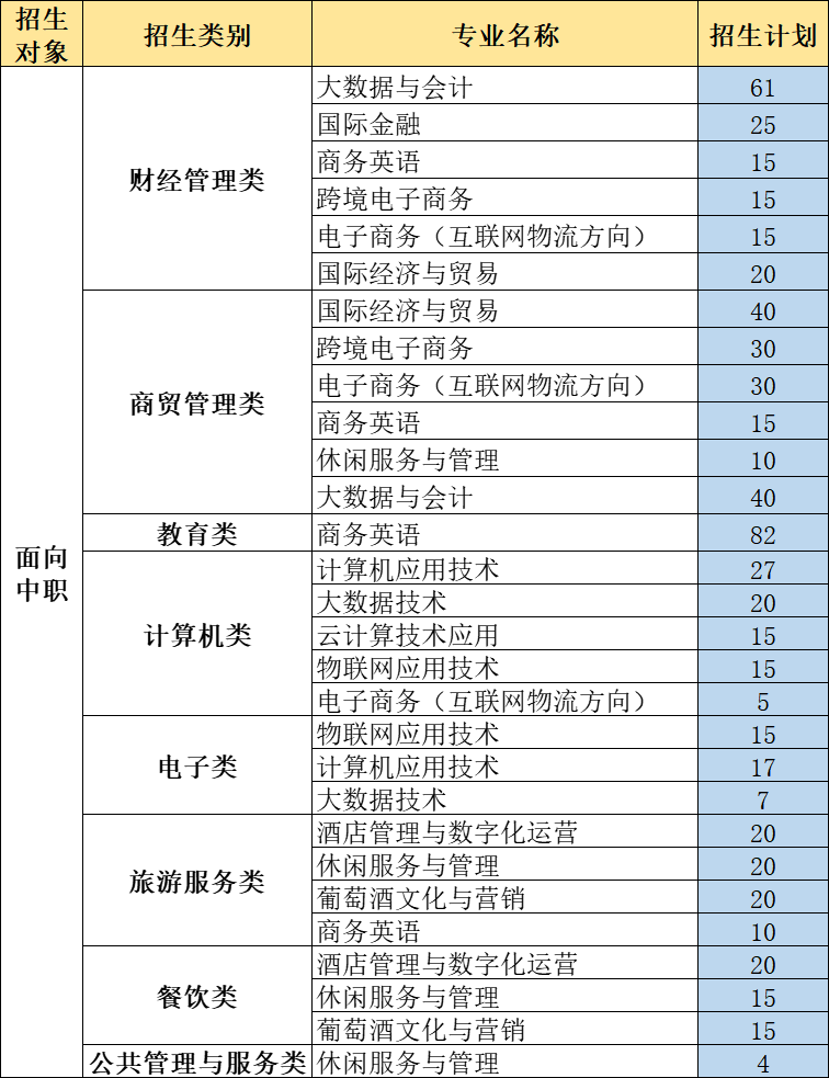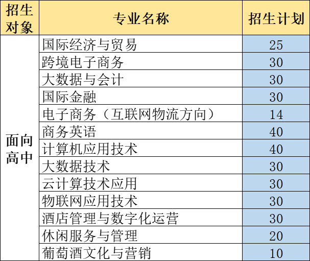 福州墨尔本理工职业学院高职分类考试招生专业有国际经济与贸易、跨境电子商务、大数据与会计、商务英语、计算机应用技术、大数据技术等。