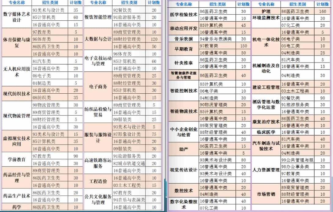 三明医学科技职业学院高职分类考试招生专业及计划2022