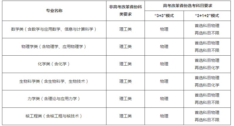 2022年我校强基计划招生专业包括:数学类(含数学与应用数学、信息与计算科学)、物理学类(含物理学、应用物理学)、化学类(含化学)、生物科学类(含生物科学、生物技术)、力学类(含理论与应用力学)、核工程类(含核工程与核技术)。