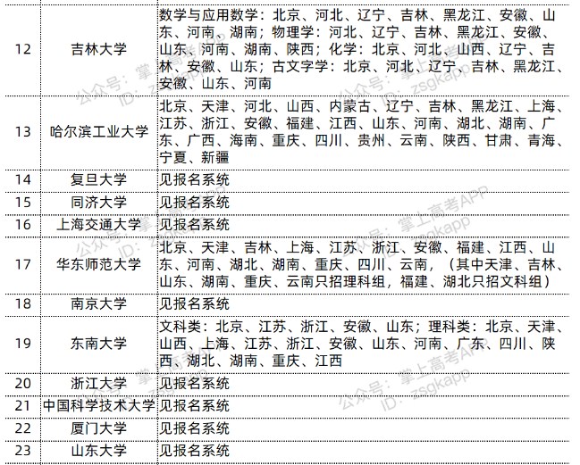 东南大学2022强基计划招生省份