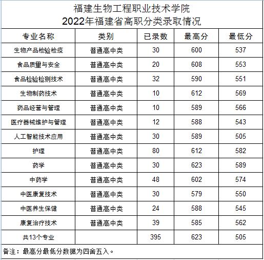 2022福建生物工程职业技术学院录取投档分数线及征求计划