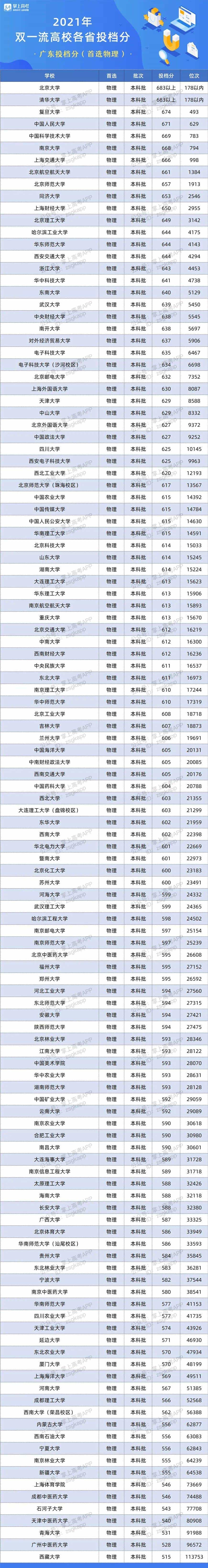 2021年广东双一流录取分数线:上海交通大学投档分654分、复旦大学投档分647分、北京师范大学投档分631分、上海财经大学投档分624分、华东师范大学投档分623分、对外经济贸易大学投档分617分。