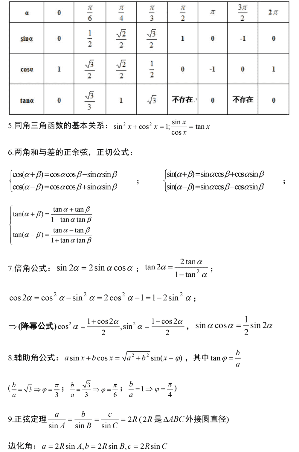 2022高考数学必考知识点总结