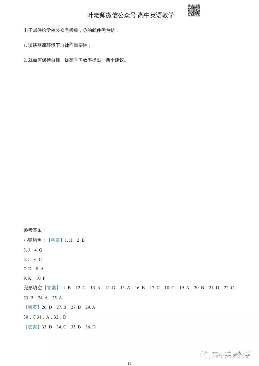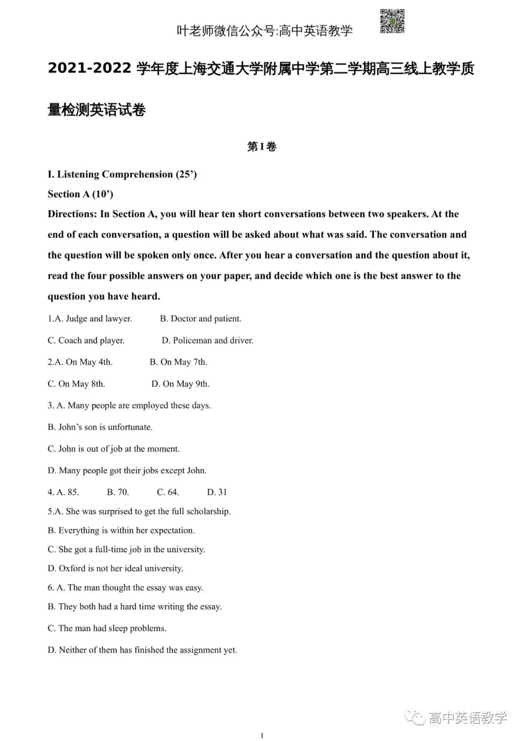 上海交大附中高三下学期教学质量检测英语试卷及答案