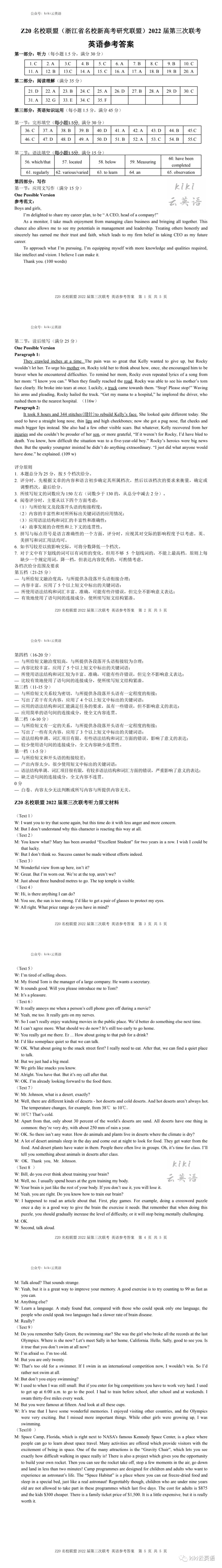 2022届浙江Z20名校高考研究联盟三模英语试卷及答案