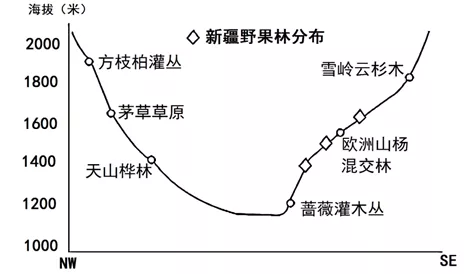 【6题详解】由图可知,新疆野苹果林分布于山谷东南侧,为阴坡,阴坡受太阳辐射影响小,蒸发微弱,水分条件好,D正确,A错误;该地距离海洋较远,受湿润气流影响小,图中所示阴坡坡度大,土层薄,BC错误;故选D。