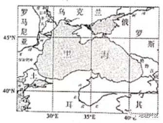 黑海是古地中海的一个残留海盆,因水色深暗而得名,年降水量600~800毫米,平均深度为1271米,中部是深海盆,其深层海水盐度较表层高,在100~150米深处存在密度跃层,形成“双层海”。黑海海底沉积有丰富的黑色有机质,有机质在厌氧细菌的作用下会分解出硫化氢。下图为黑海周边区域图。