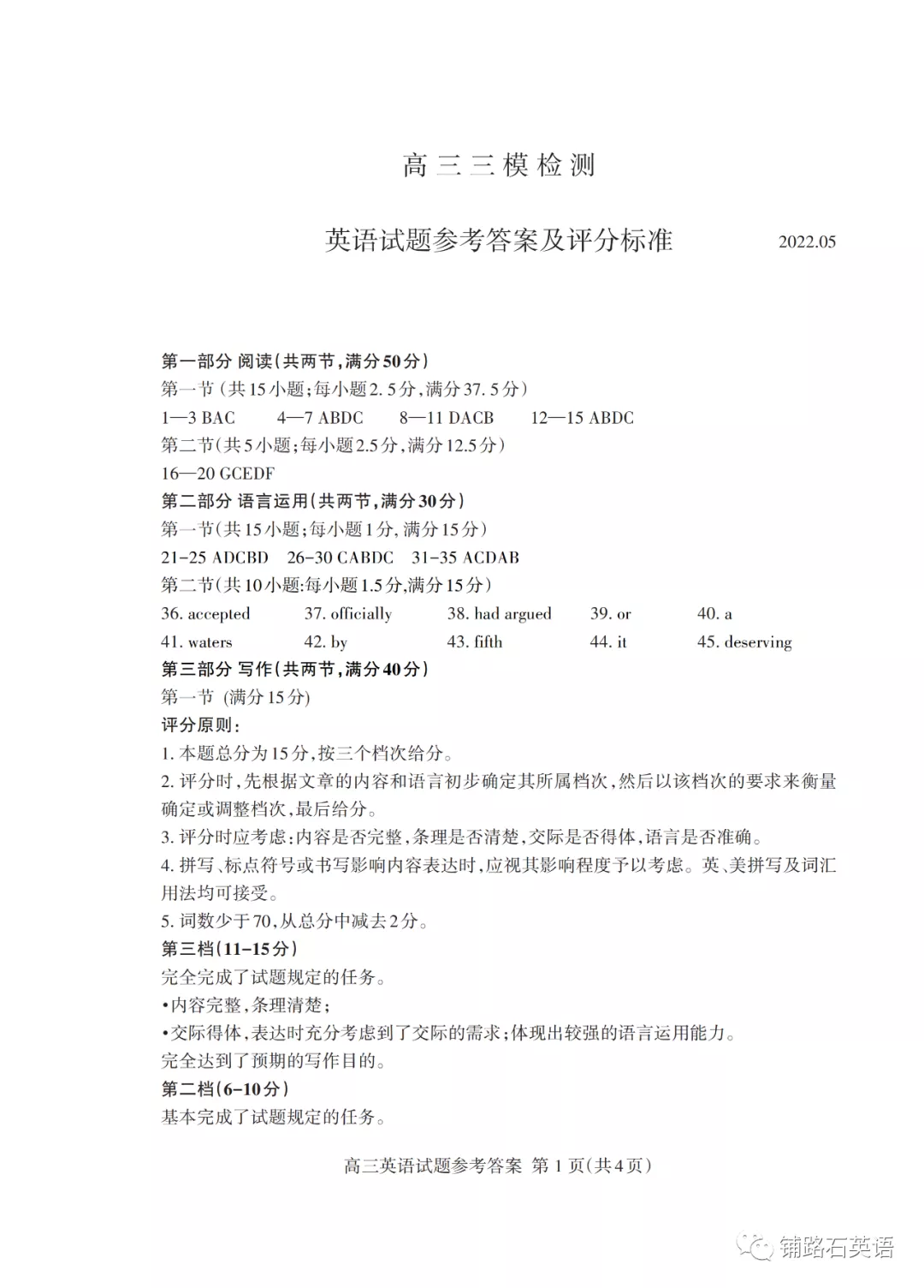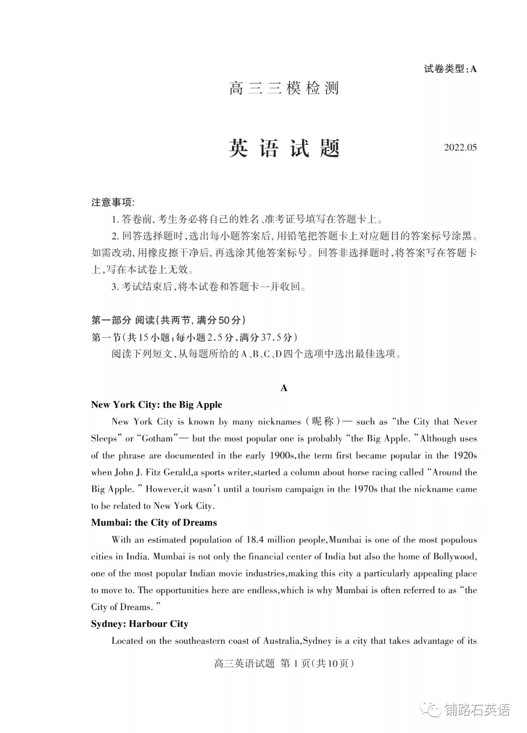 2022年新高考I卷(新高考一卷)英语试卷真题与答案解析
